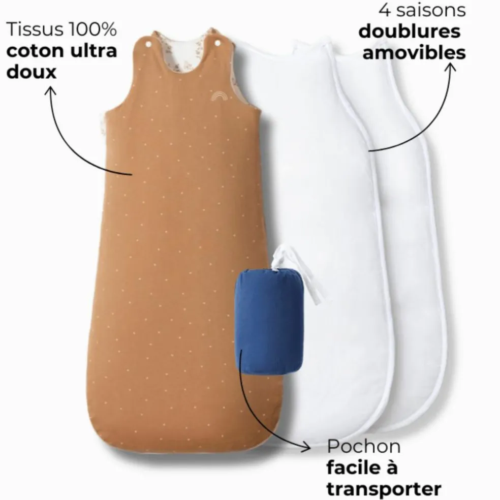 – 4 saisons en une seule gigoteuse : 2 doublures amovibles pour ajuster la chaleur de TOG 1 à TOG 3.