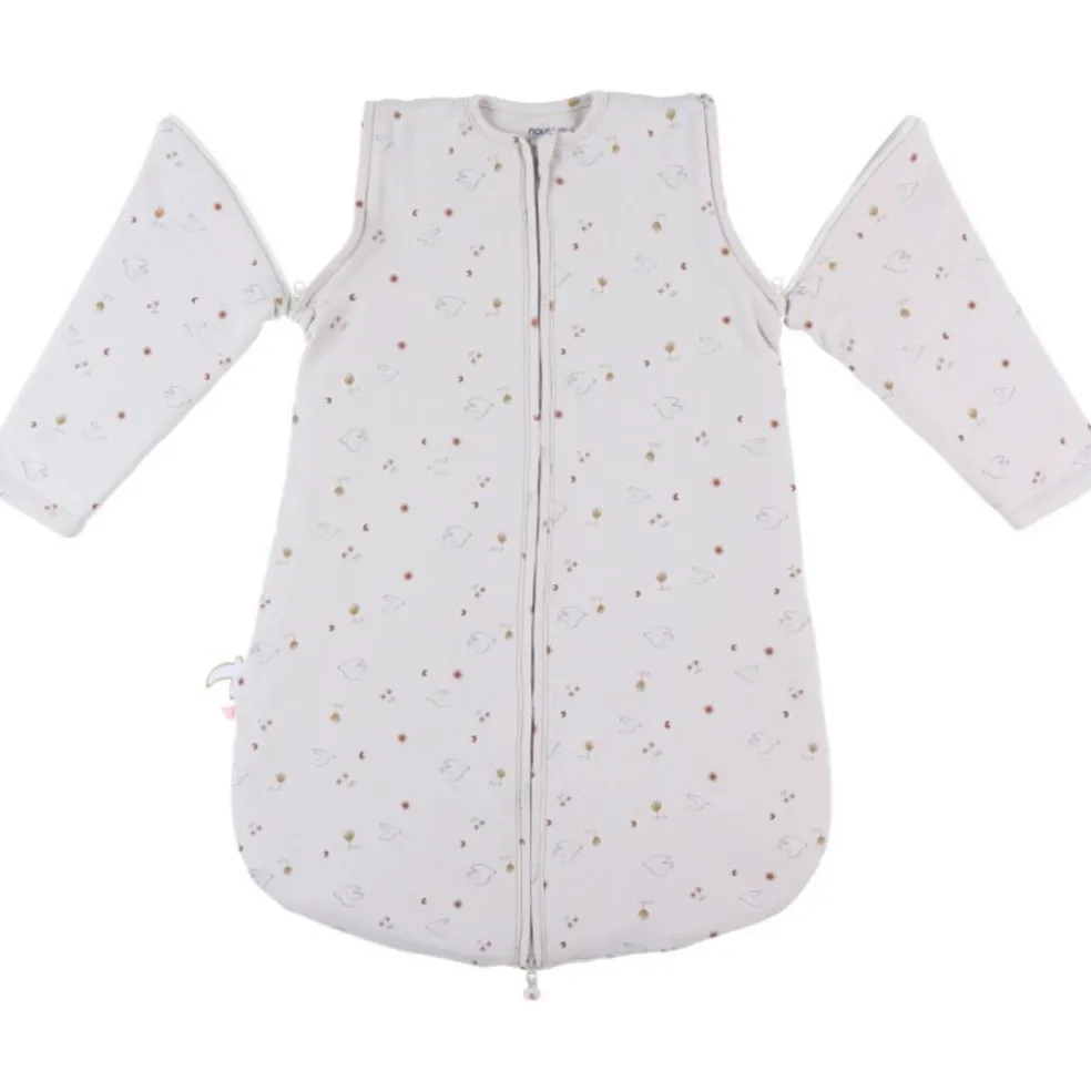 – La gigoteuse ornée de l’imprimé jersey Colombes du Bonheur, avec ses manches amovibles, est idéale pour votre bébé.