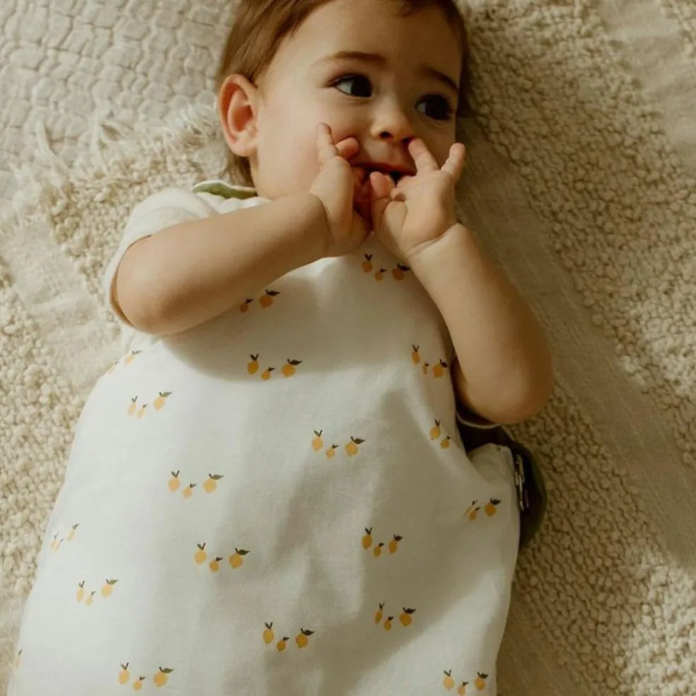 Offrez à votre bébé des nuits douces et sécurisées en toute saison avec la gigoteuse réversible 4 saisons motif citrons (0-6 mois).
