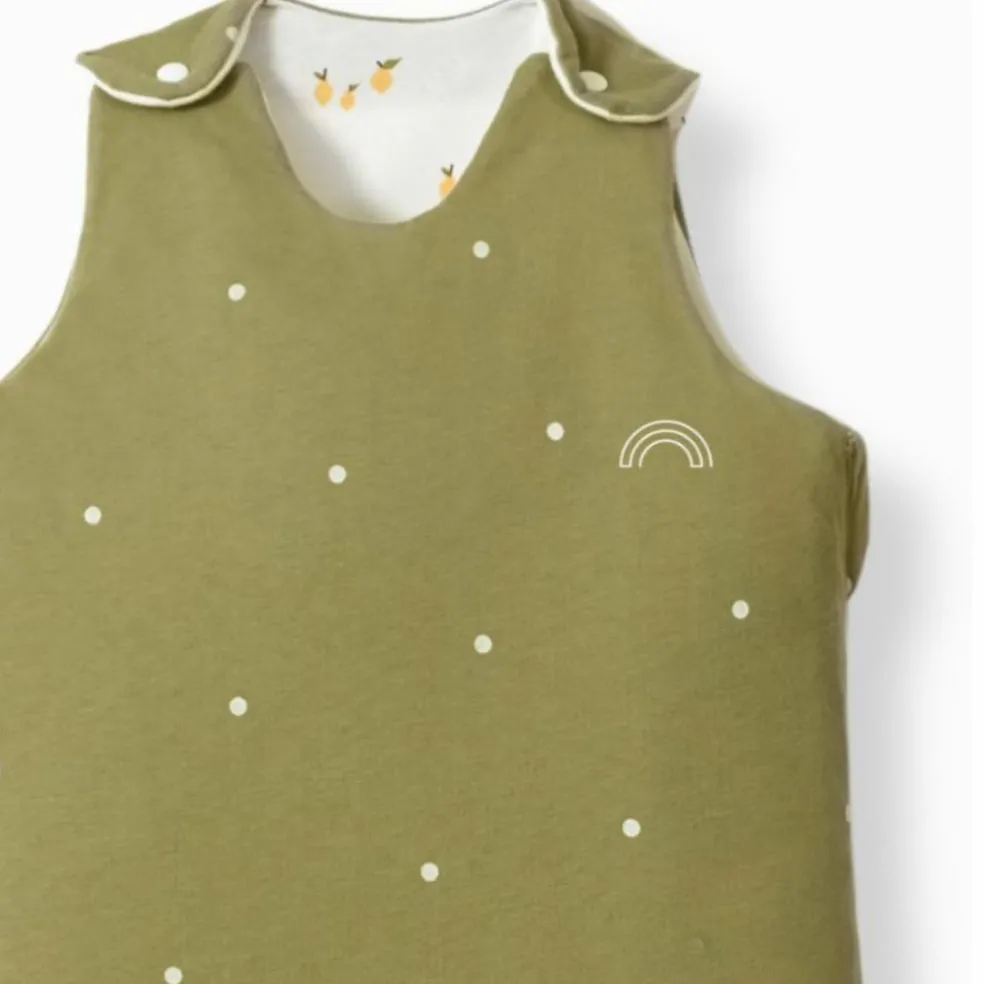 Grâce à son concept ingénieux et unique, cette turbulette accompagne votre enfant toute l’année. Avec ses doublures amovibles, elle s’adapte aux températures et aux besoins : chaude en hiver, légère en été. Son design réversible, avec un côté vert orné de pois et arc-en-ciel discret et un côté blanc imprimé de petits citrons, apporte une touche de fraîcheur et de tendresse au coucher.