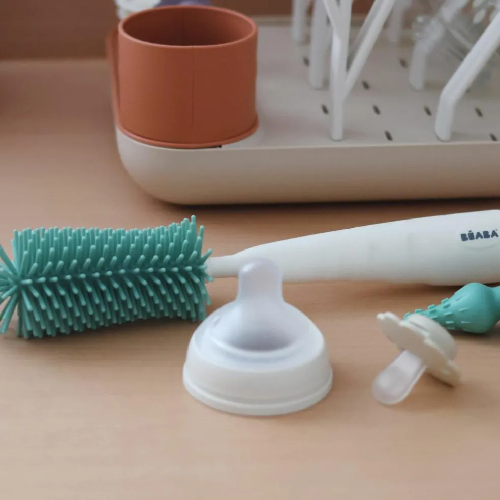 Nettoyez biberons et accessoires en toute simplicité avec le Goupillon Vert Sauge de Béaba, un indispensable du quotidien des jeunes parents !