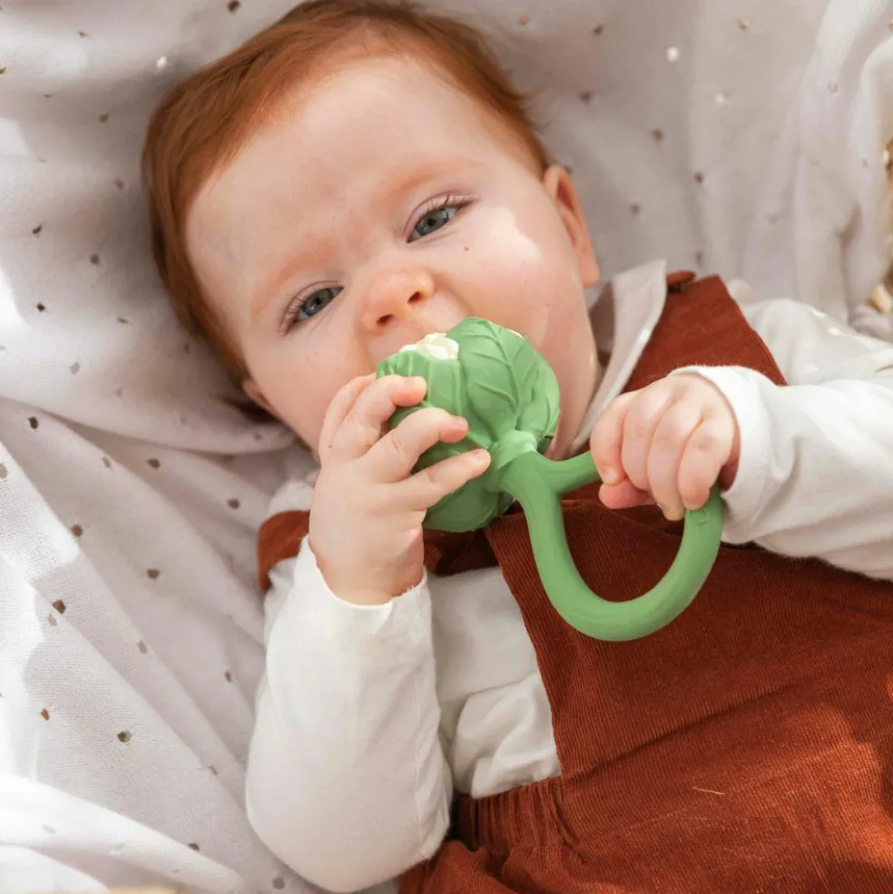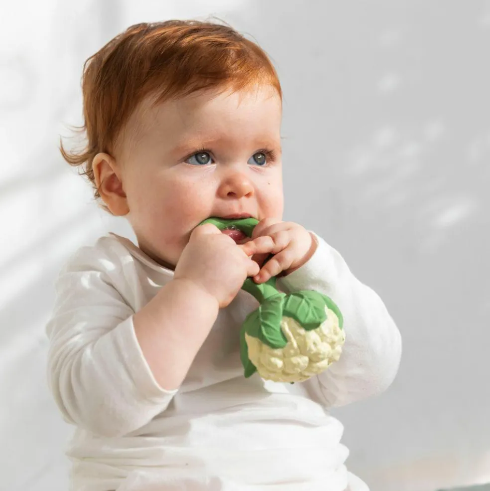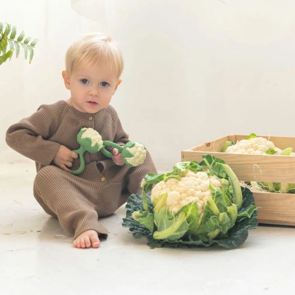 Offrez à votre bébé un moment de calme et de découverte avec le hochet Cauliflower d’Oli&Carol, un jouet 2 en 1 à la fois apaisant et écologique !