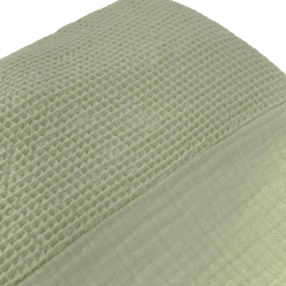 – Double texture : l’élégance du nid d’abeille lavé combiné à la douceur de la double gaze de coton biologique.