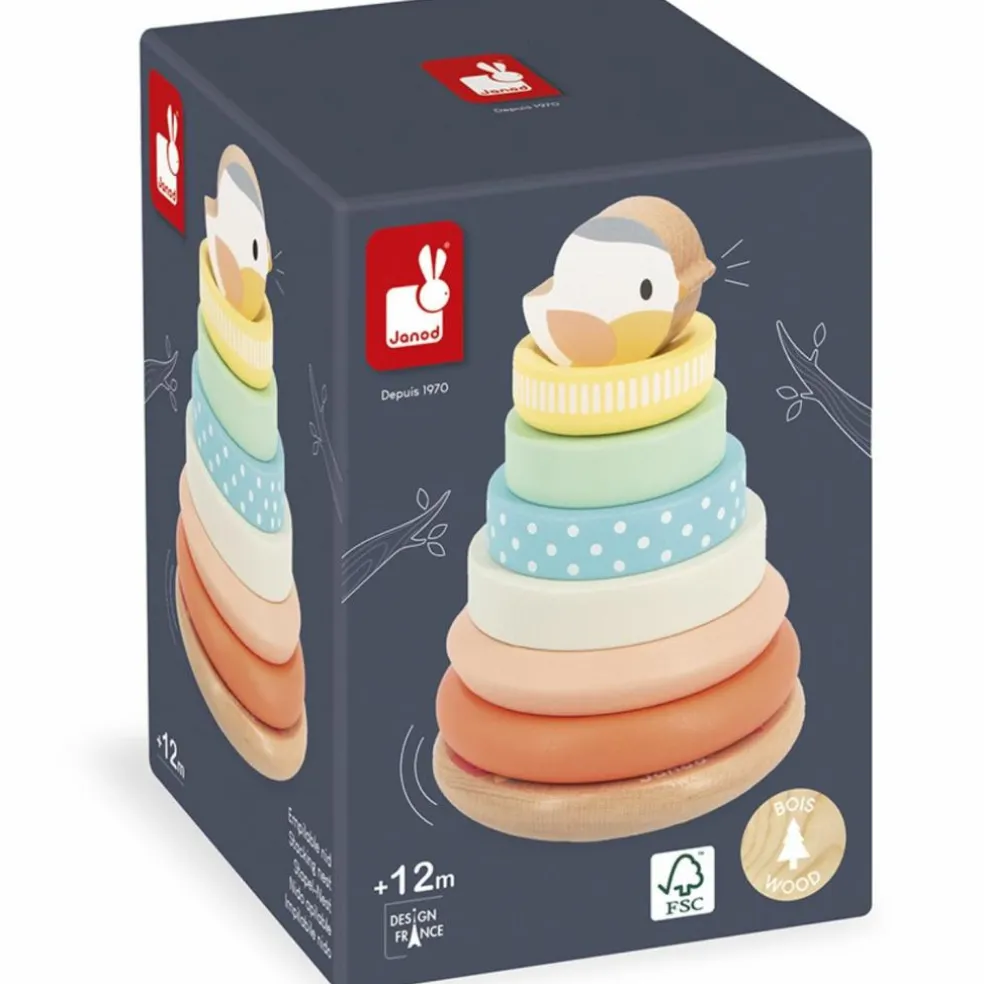 Faites éclore la motricité de bébé avec le Jeu à empiler Nid Pure de Janod, un jouet en bois plein de douceur et de poésie !