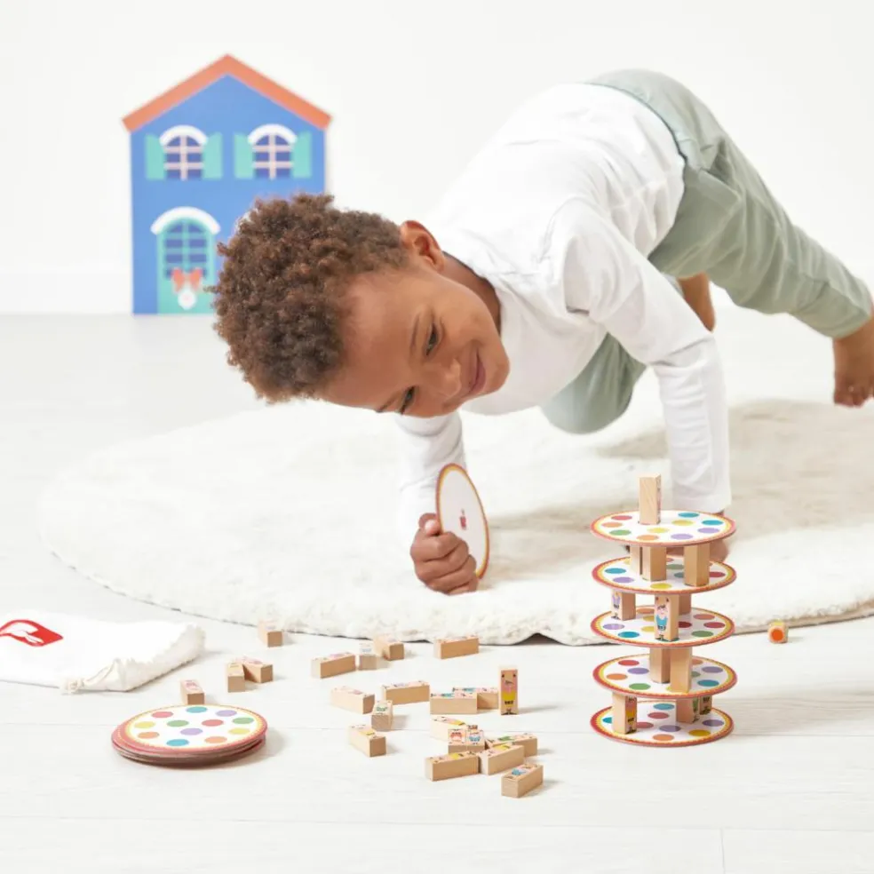 Le jeu d’adresse Acrobat’ de la marque Janod invite l’enfant à faire preuve de stratégie et de déduction pour créer la tour la plus haute possible sans la faire tomber.