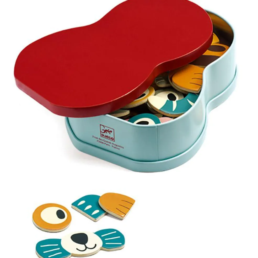 Le jeu d’association magnétique Animo de la marque Djeco développe à la fois la préhension fine et l’imagination des tout-petits. Ils pourront créer différents personnages grâce aux accessoires aimantés. Pratique, la boîte double face sert à la fois de support et de rangement pour les aimants lorsque le jeu est terminé.