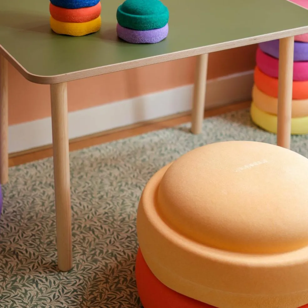 – Évolutif et polyvalent: Peut servir de tabouret, de marche, de plateforme de saut, ou d’élément sensoriel selon l’âge et l’envie de l’enfant.