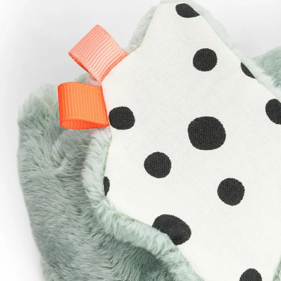 – Une aile est remplie de perles pour stimuler le sens du toucher et l’autre fait un bruit de papier froissé pour stimuler l’ouïe.