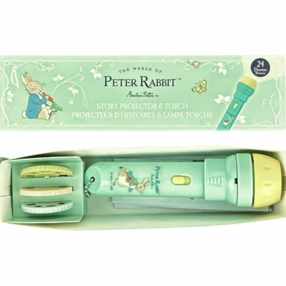 Avec ce projecteur d’histoires inspiré de l’univers enchanteur de Peter Rabbit™, transformez la chambre de votre enfant en un petit cinéma plein de tendresse. Il suffit d’insérer l’un des 3 disques à images inclus pour raconter de jolies aventures pleines de malice et d’imagination. La lampe se transforme aussi en lampe de poche pratique pour rassurer votre tout-petit la nuit. Un objet à la fois ludique et réconfortant, parfait pour instaurer un rituel du soir tout en douceur.