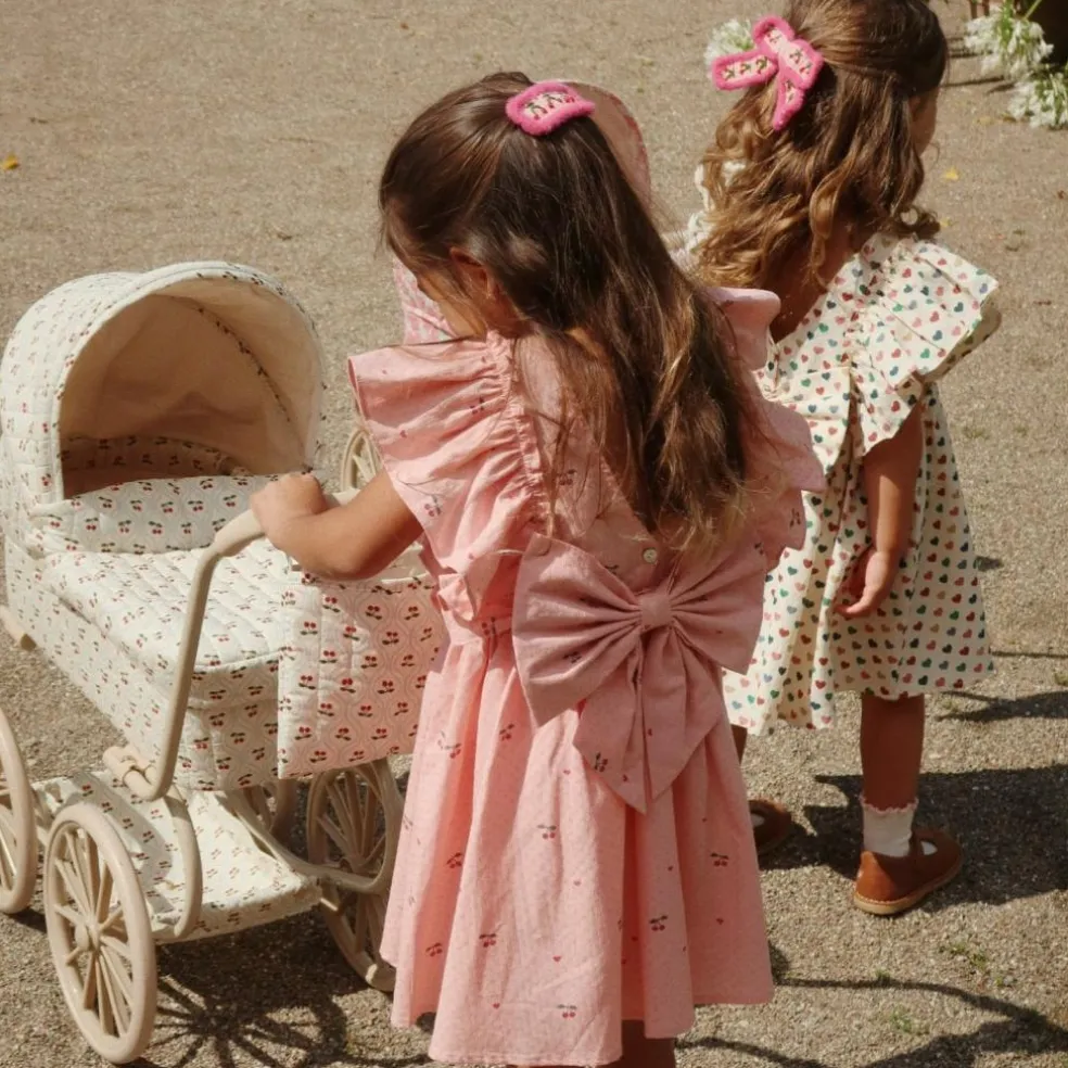 – Landau de poupée de style vintage avec quatre grandes roues pour une promenade facile et stable pour les plus jeunes.