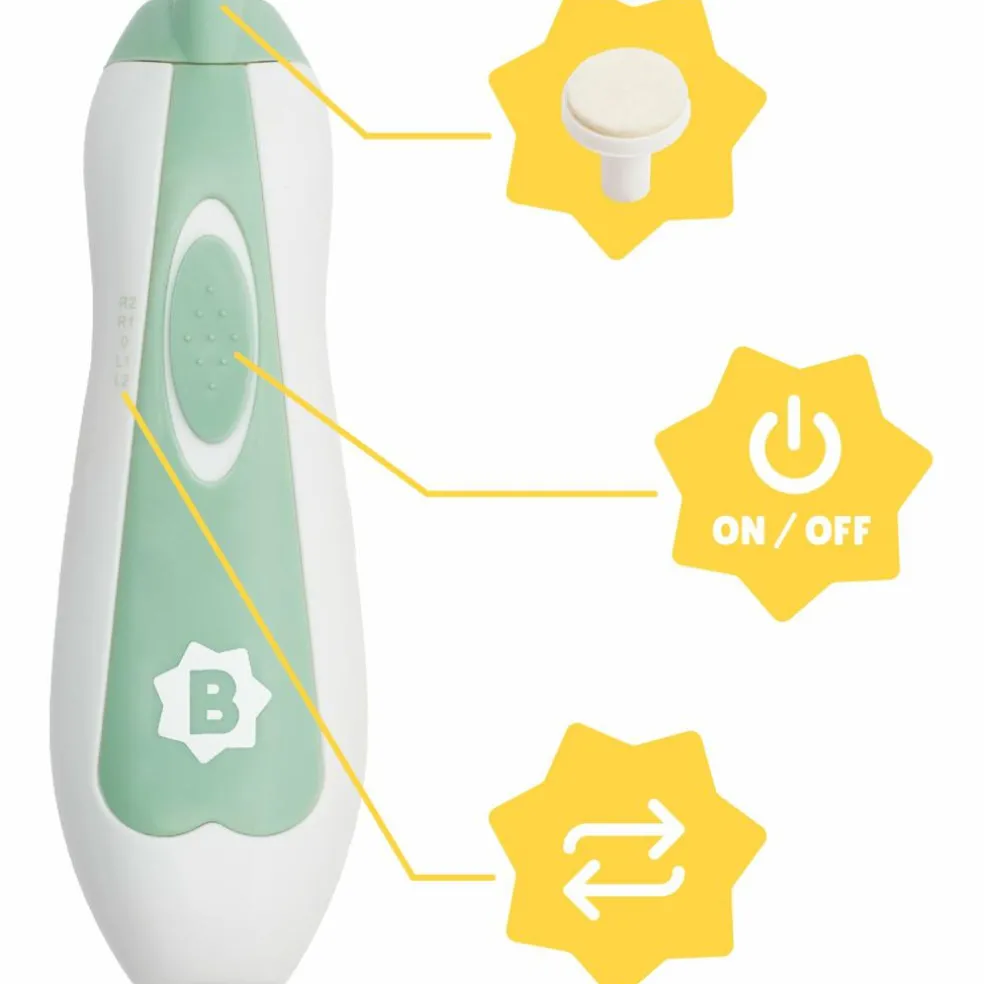 – Sécurité garantie : l’arrêt automatique et les grains fins des embouts assurent un limage sans risque pour bébé.