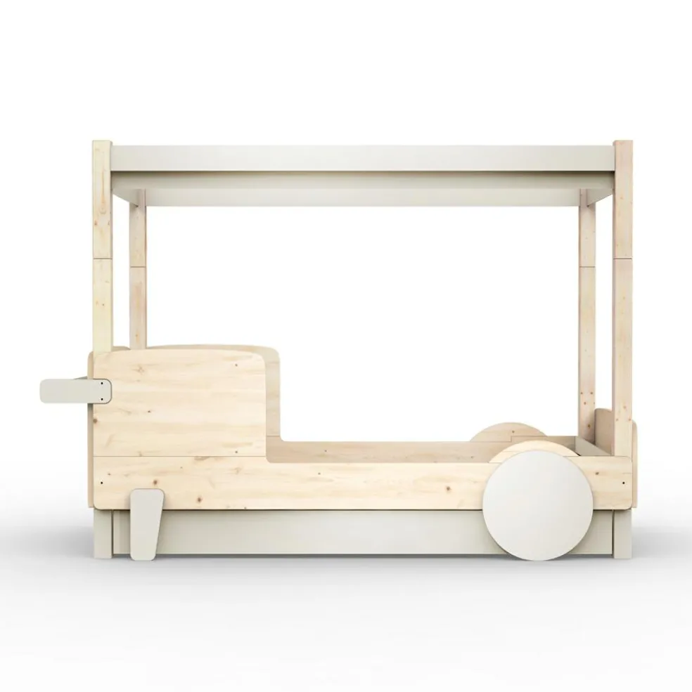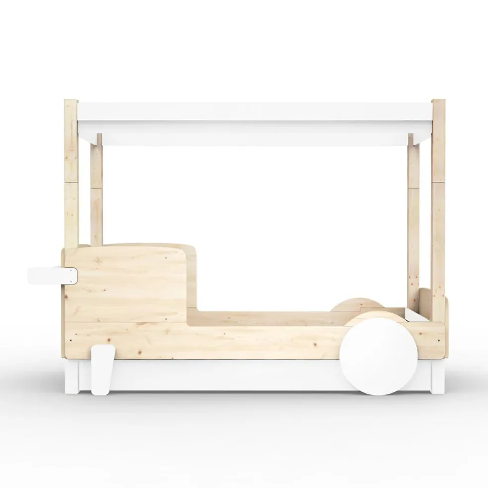 – Tiroir-lit en sapin et fond en MDF mélaminé blanc perforé.