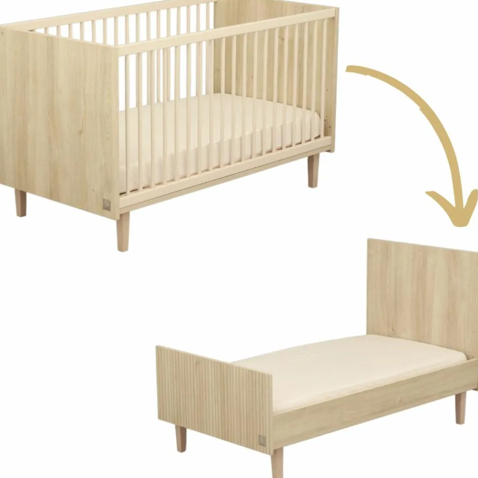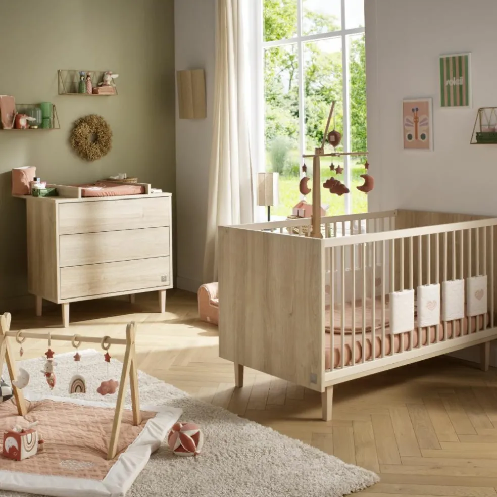 – Évolutif et pratique : Utilisable dès la naissance, ce lit 70 x 140 cm passe facilement de lit à barreaux à lit junior grâce aux pièces de transformation incluses.