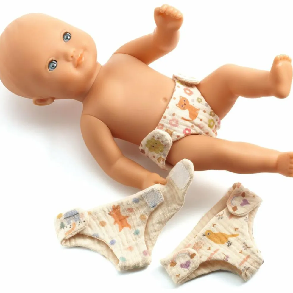 On va changer la couche ! Lot de 3 couches lavables en tissu gaze de coton pour poupons avec fermeture velcro.