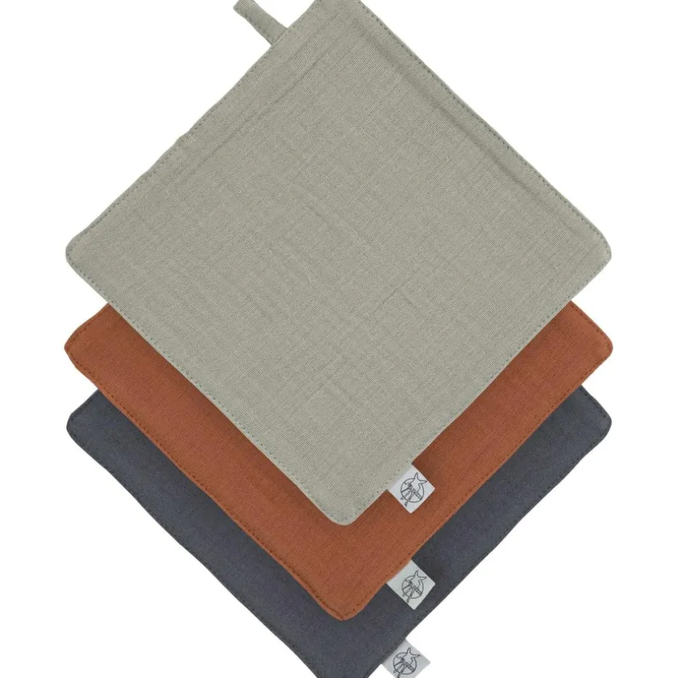 – Débarbouillettes en mousseline/terry GOTS.