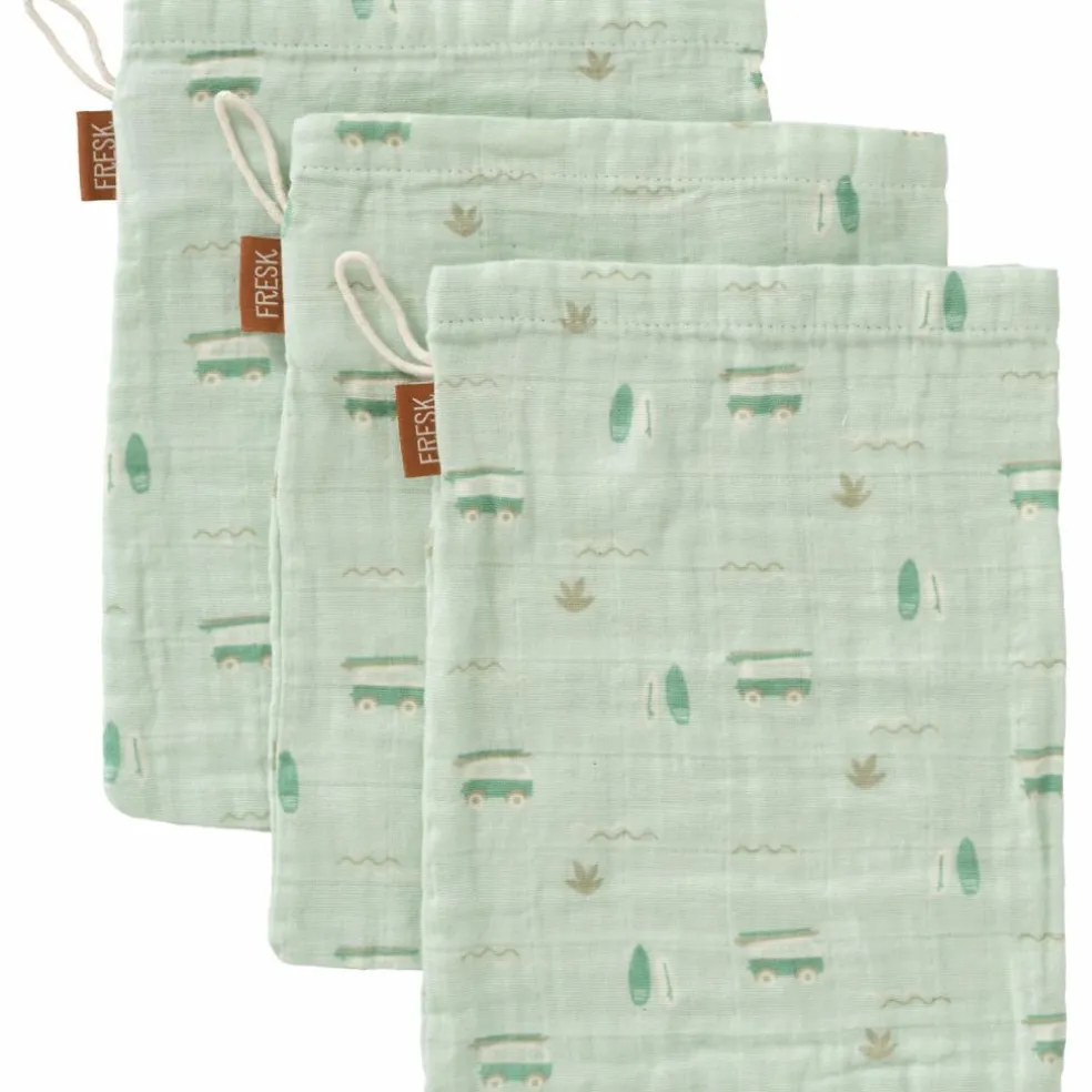 – Cet ensemble de trois débarbouillettes peut être combiné avec un lange Fresk du même style.
