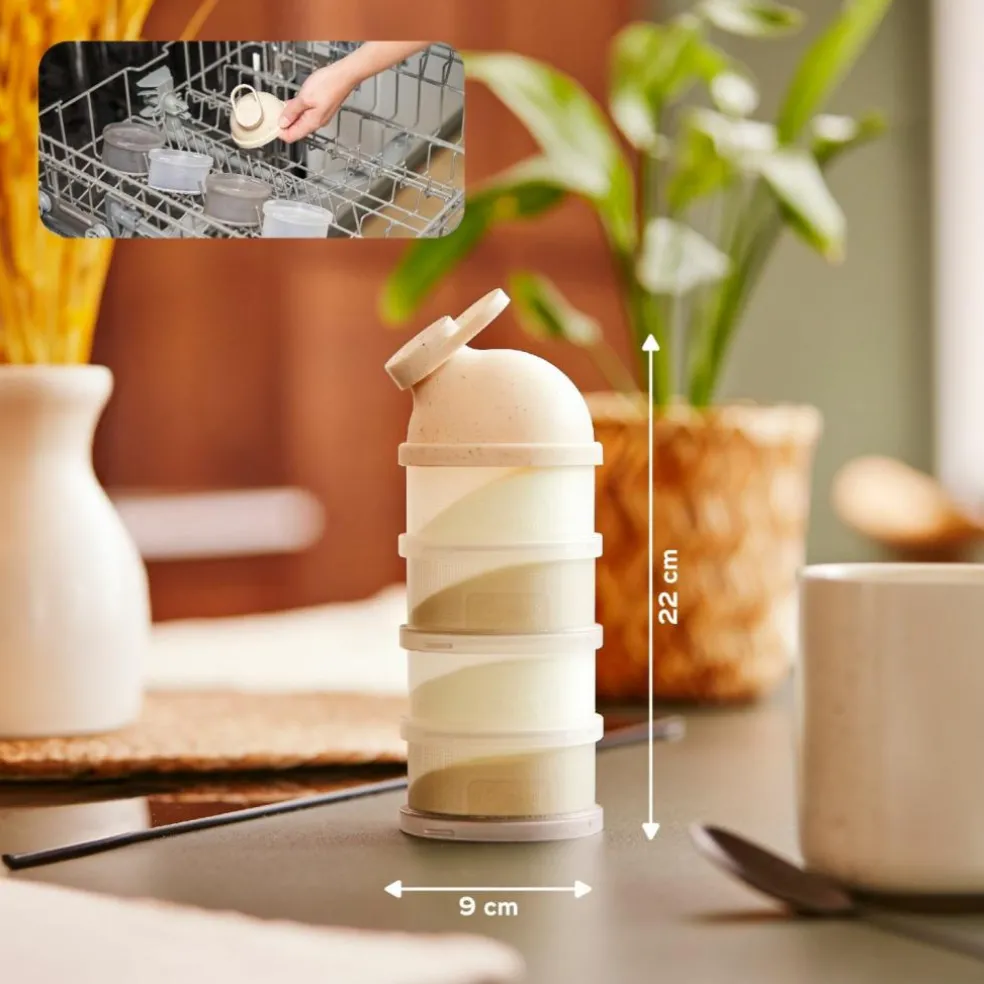 – Contenance XL : capacité de 12 cuillères de lait en poudre par dose pour des biberons jusqu’à 360 ml.