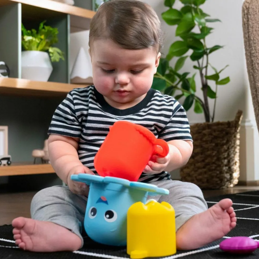 – Bébé remplie, vide et découvre les couleurs, textures et plus encore.