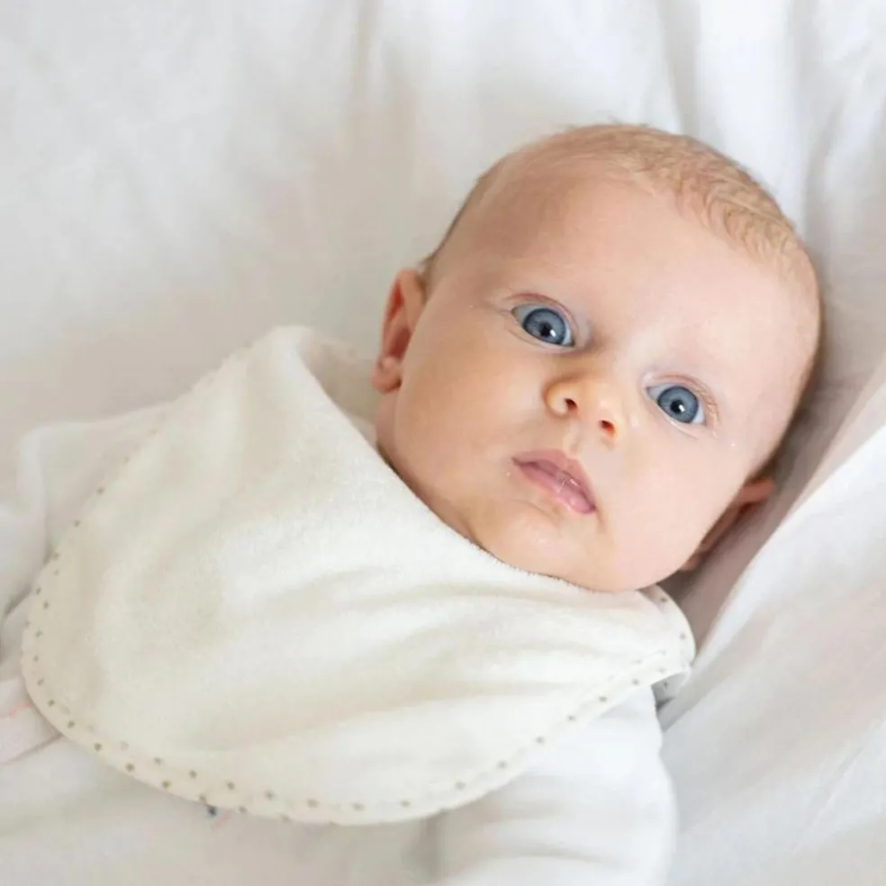 Le lot de 7 bavoirs à velcro Essentiel écrus de la marque Trois Kilos Sept permet de protéger les vêtements de bébé des taches et de la salive lors des repas.