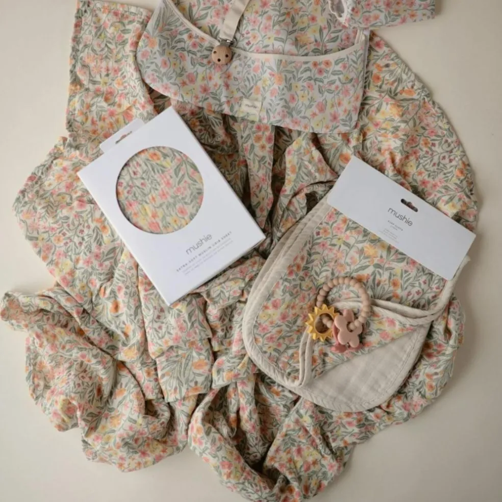Le maxi lange en coton Pastel Blooms de Mushie est un indispensable du quotidien avec bébé. Ultra doux, respirant et généreusement dimensionné, il s’utilise de mille façons : pour emmailloter, couvrir, allaiter ou simplement câliner bébé.