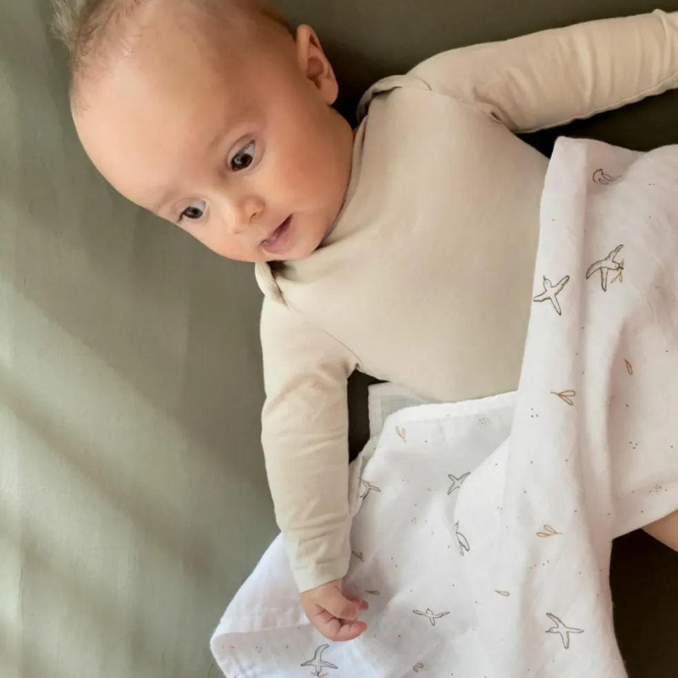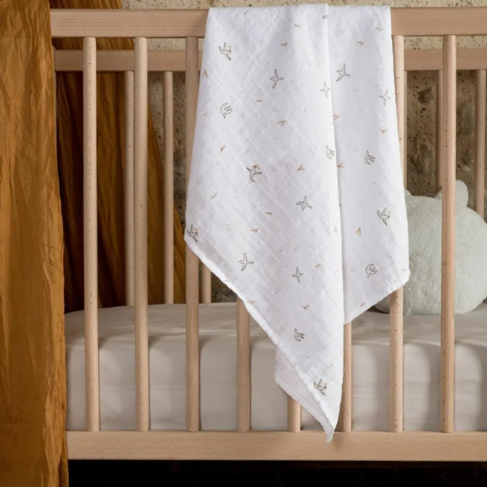 – Fabriqué en mousseline de coton bio.
