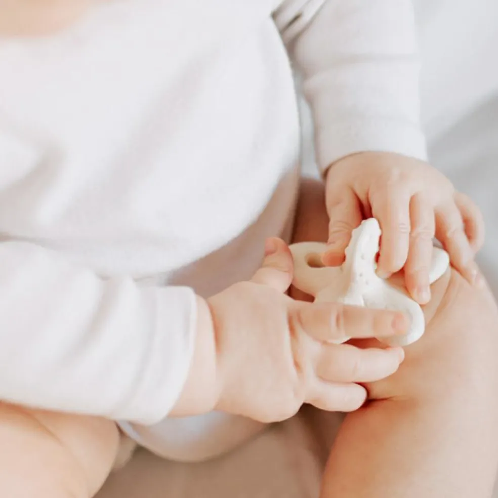 Conçu spécialement pour les nouveau-nés, ce mini jouet de dentition allie design ergonomique, textures variées et matières 100 % naturelles pour apaiser les gencives de bébé tout en éveillant ses sens. Léger et facile à attraper, il accompagne les petites mains dans leurs premières découvertes sensorielles.