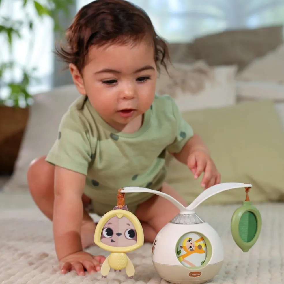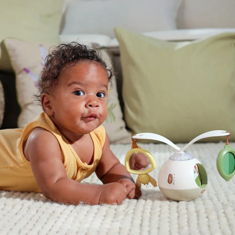 – À suspendre ou à poser au sol pour encourager bébé à jouer sur le ventre.