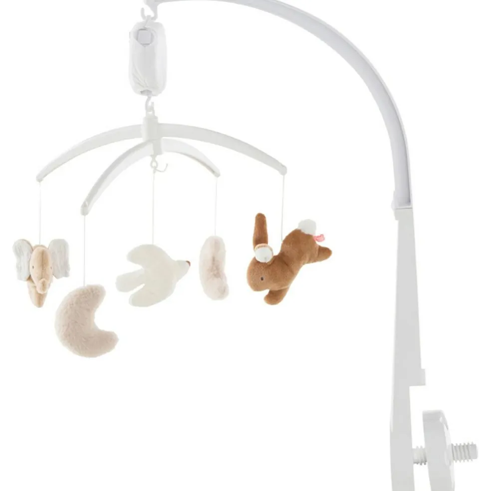 – Les tons naturels et doux du mobile musical, mettant en vedette les personnages de Bali, Moka et leur amie la colombe du bonheur, envelopperont bébé dans une ambiance apaisante pour l’endormir au son de la musique Lullaby de Brahms.
