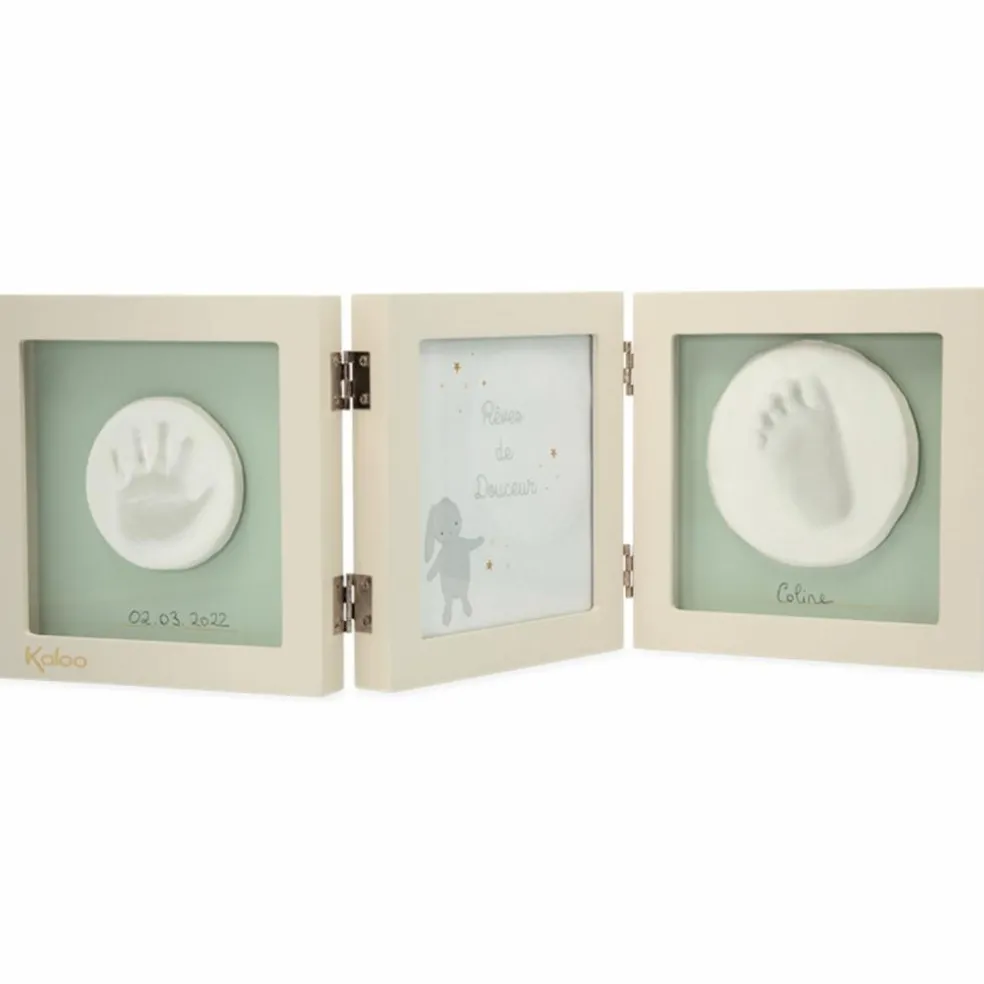 – Kit de moulage en argile qui permet de prendre les empreintes de mains et de pieds de bébé.