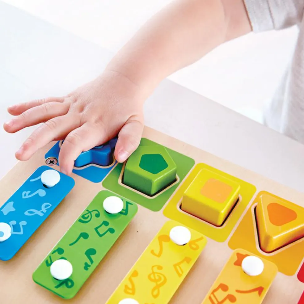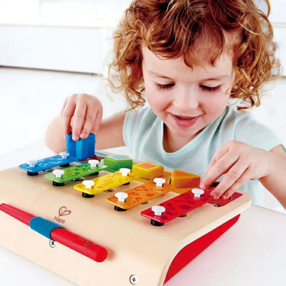 Mon premier xylophone trieur de formes de la marque Hape est idéal pour les petits musiciens en herbe ! Il développe le rythme, la motricité et l’éveil musical des tout-petits. Mon premier xylophone trieur de formes est un xylophone ainsi qu’un jeu de tri de formes !