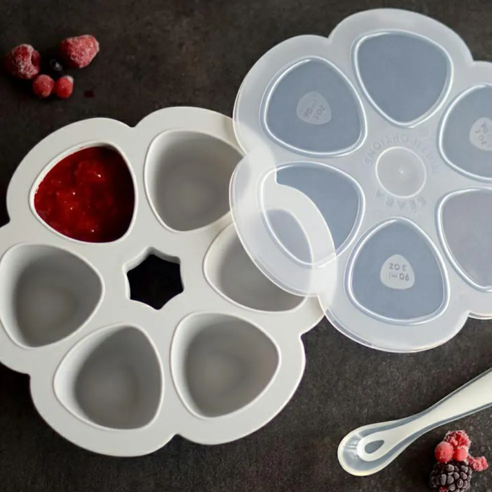 Le moule de congélation multi portions silicone light mist de la marque Béaba permet de congeler purées et compotes maison et de les démouler à l’unité en fonction de l’appétit de bébé.