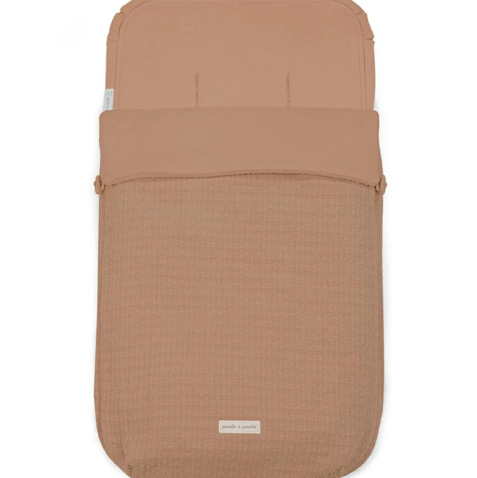 – Le nid d’ange Icon Caramel de Pasito a Pasito est une gigoteuse pour bébé en tissu gaze et bambou très doux.