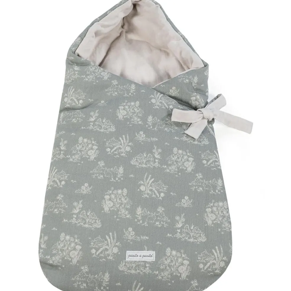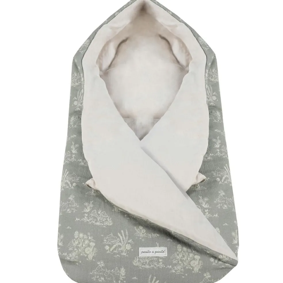 – La nid d’ange à capuche Toile de Jouy Forest de Pasito a Pasito est une gigoteuse pour bébé en tissu imprimé et bambula très doux.