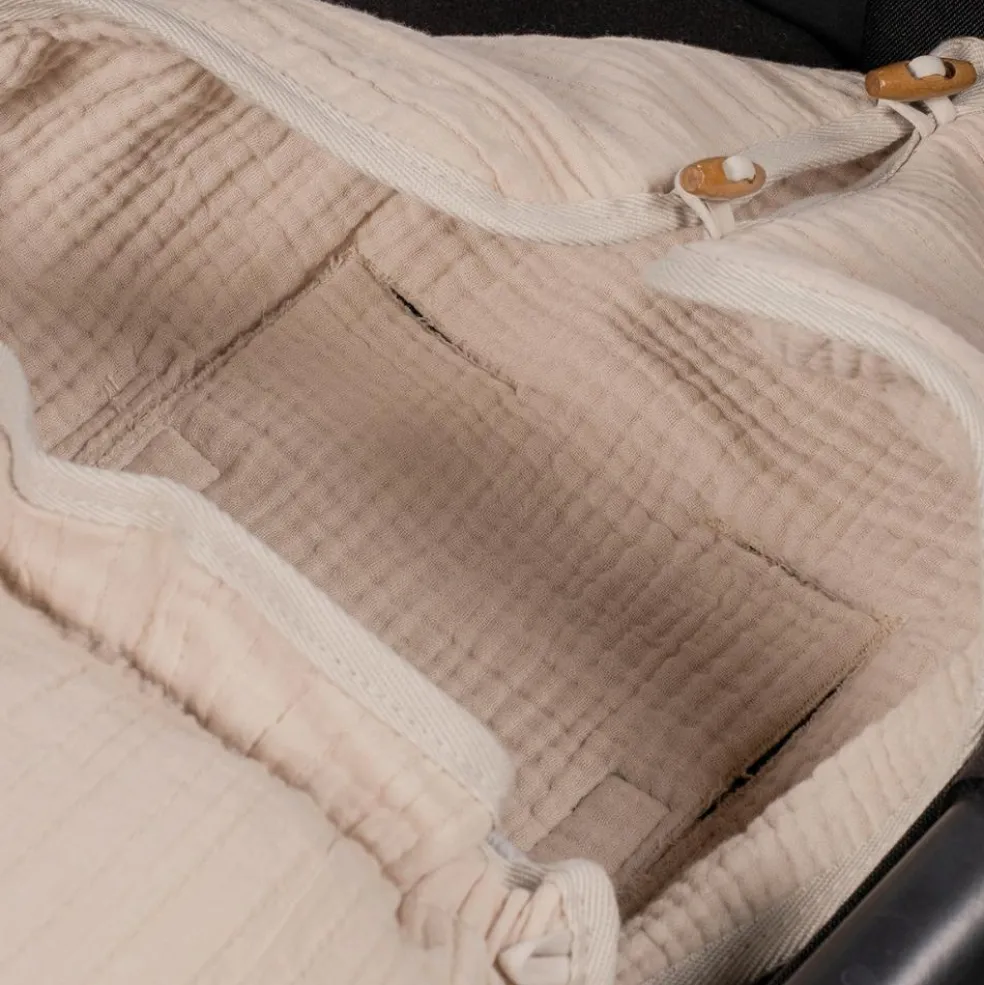 – Il est fabriqué avec un tissu extérieur 100% coton recyclé et un intérieur doux en mousseline 100% coton.