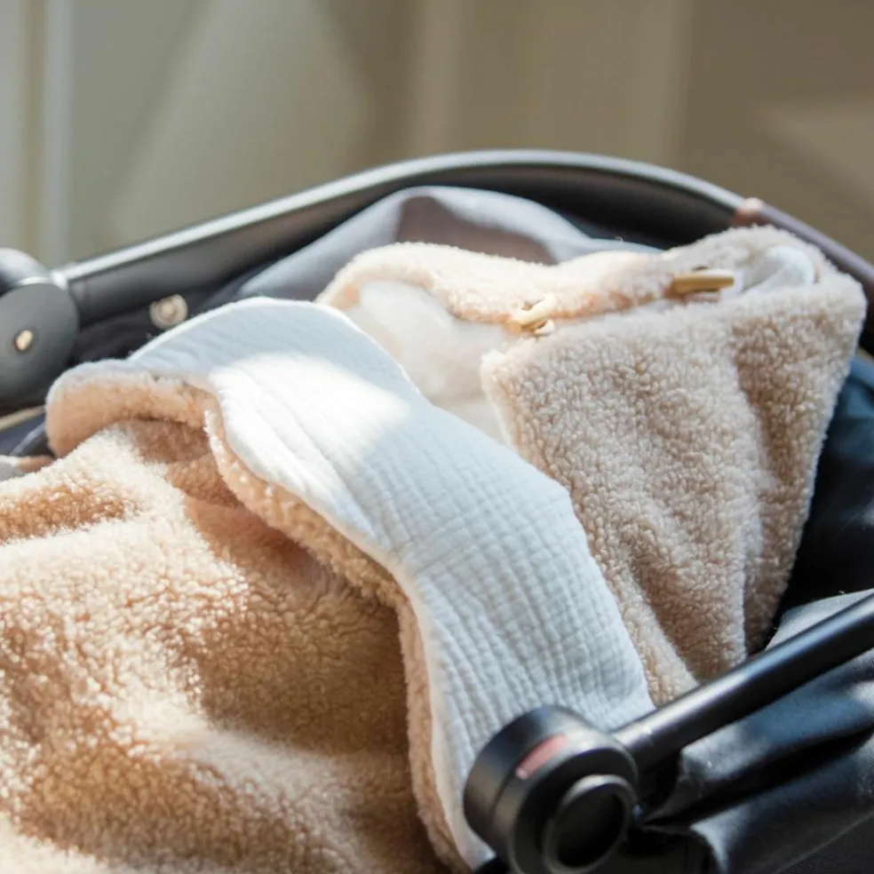 – Le nid d’ange Paddington est un sac pour bébé en doux tissu beige en polaire et mousseline.