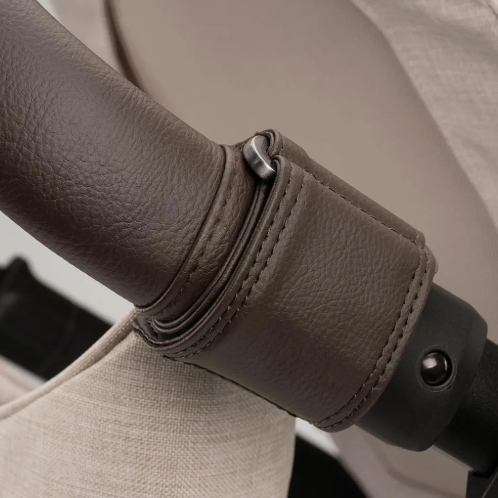 – Les sangles avec effet cuir surpiqué s’attachent solidement au guidon pour maintenir l’organisateur à portée de main.