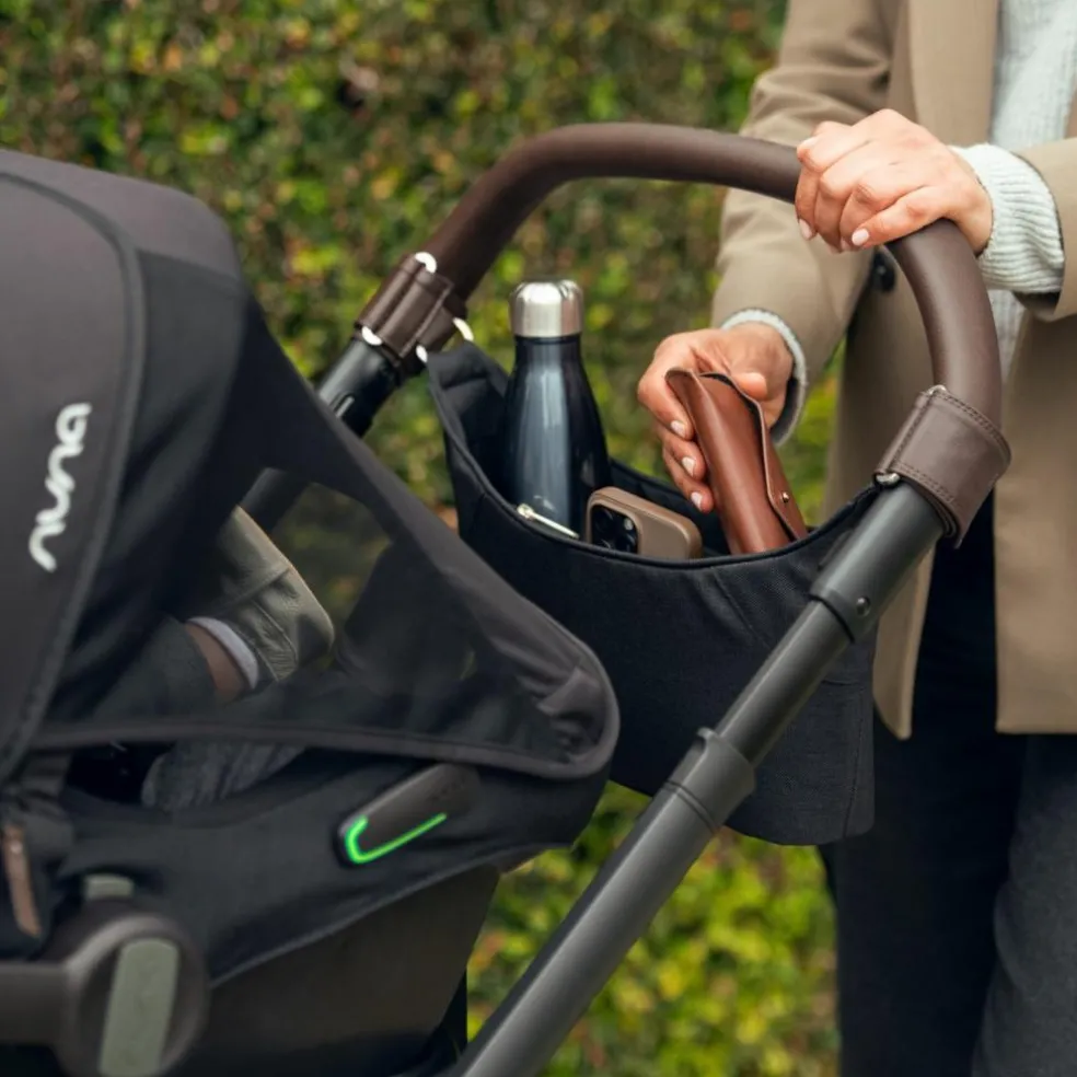 Chaque chose à sa place. L’organiseur de poussette Nuna permet de garder tous les accessoires des parents à portée de main, tout en offrant un peu de repos bien mérité à vos épaules et à votre dos.