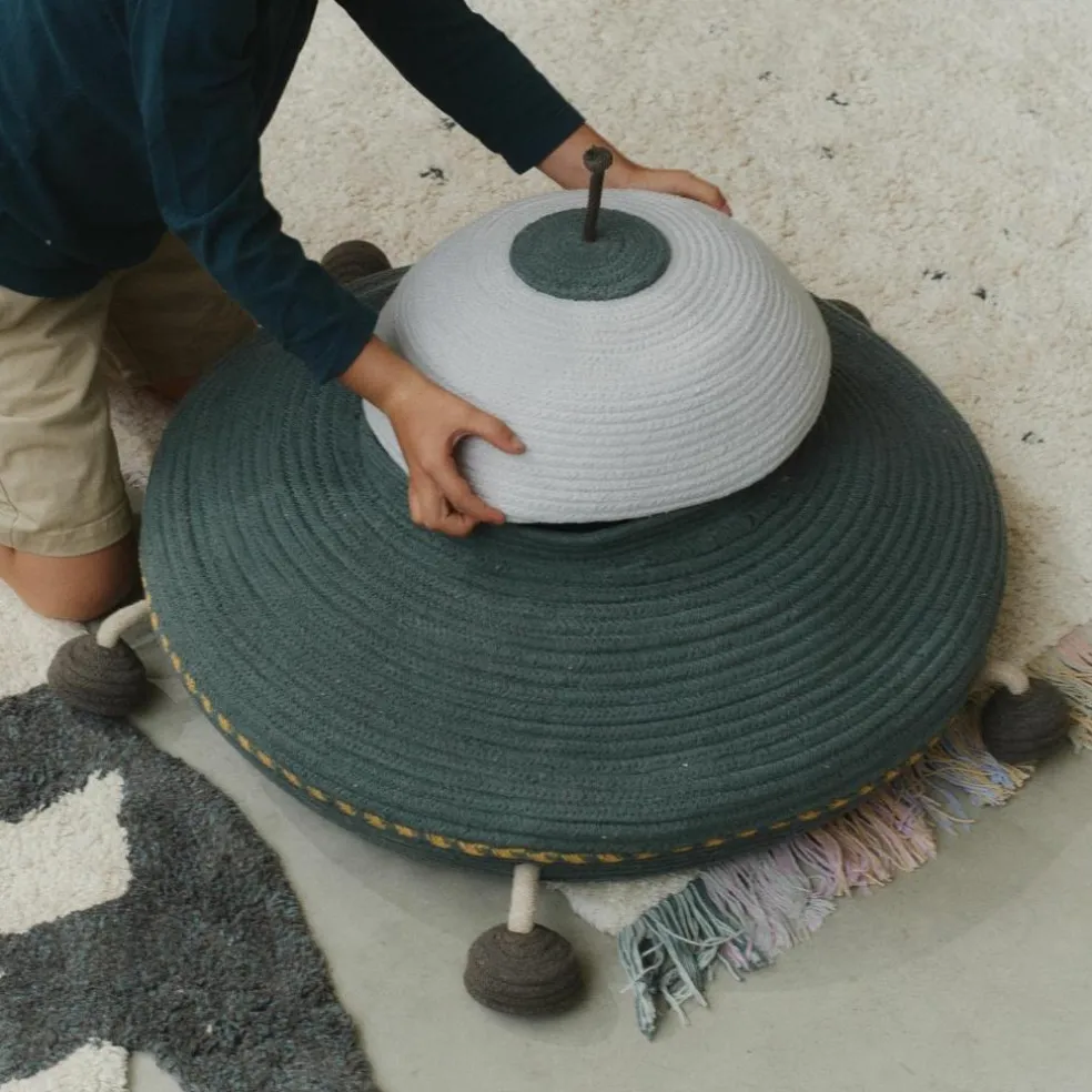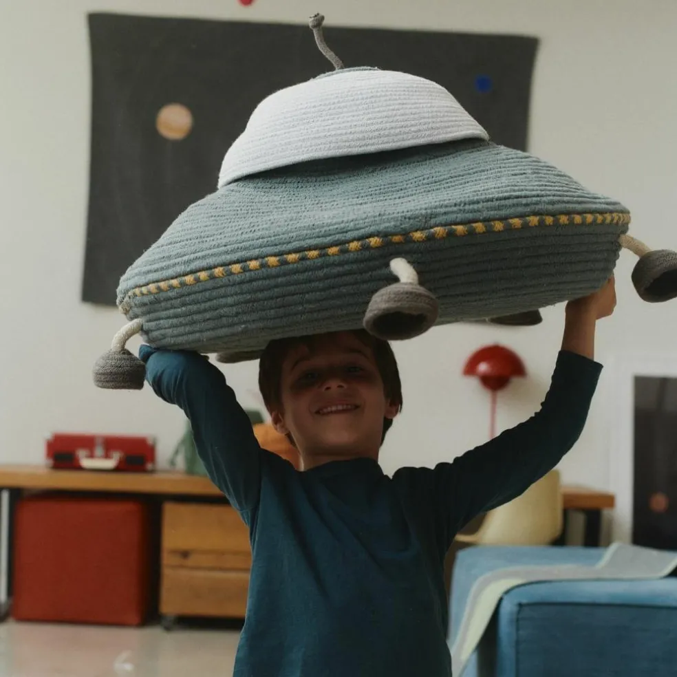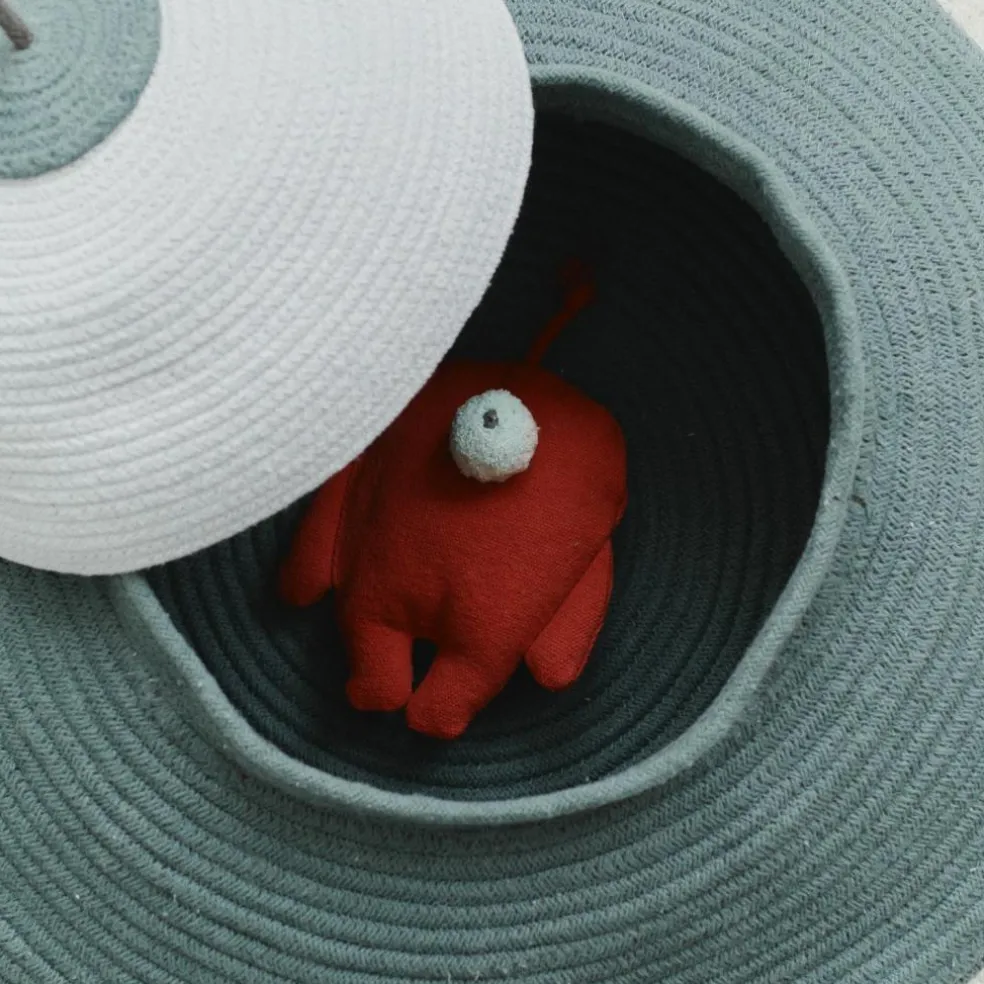 Prochaine étape : Mars ! Venez découvrir la prochaine planète avec l’UFO Basket et son ami extraterrestre. Un grand panier conçu manuellement en forme d’UFO, fabriqué à base de cordes de coton et rempli de matériaux PET recyclés. Il comporte des jambes mobiles pour un atterrissage parfait, une antenne filaire pour recevoir les signaux des coins les plus éloignés de la galaxie et une grande capacité de stockage pour transporter tout un équipage d’extraterrestres. À l’intérieur de l’UFO, vous trouverez un extraterrestre en textile rouge doté d’un seul œil, pilotant le navire vers des destinations les plus éloignées. C’est la solution de rangement idéale pour les enfants, parfaite pour le rangement des jouets, des livres ou tout trésor cosmique découvert par votre petit explorateur !
