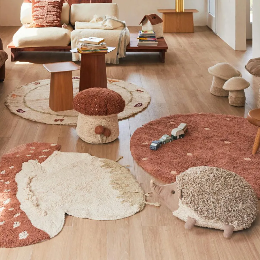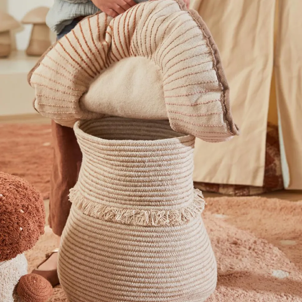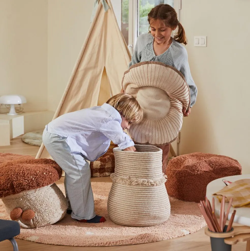 – Un gigantesque champignon Russula composé d’un panier de rangement pratique et spacieux, et d’un coussin moelleux en guise de couvercle.