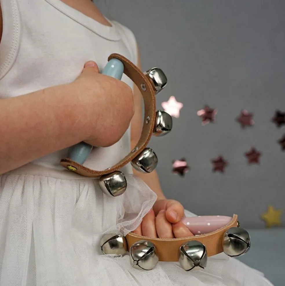 – Poignée en bois à 4 grelots bleus.
