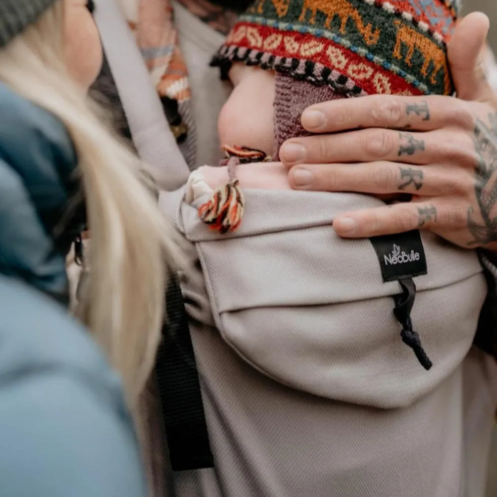 – Bébé est enroulé dans un tissu sergé brisé Néobulle en coton BIO respirant, doux et confortable.