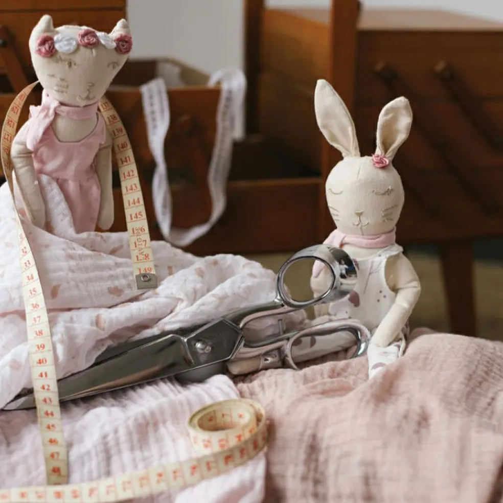 Avec sa jolie robe rose, son foulard assorti et sa couronne de fleurs, ce petit chat a tout d’un doudou chic et poétique. Facile à manipuler avec ses 20 cm, il accompagnera bébé partout : dans le lit, en promenade ou lors des grands câlins du soir. Dès la naissance, cette poupée souple devient un repère rassurant et un ami à dorloter.