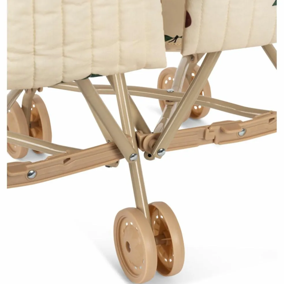 Avec son tissu crème imprimé de jolies cerises rouges et sa structure légère couleur sable, cette poussette pour poupées allie douceur et praticité. Conçue spécialement pour transporter deux poupées, elle permet aux enfants d’imaginer de tendres balades avec leurs compagnons préférés. Grâce à son assise rembourrée et ses ceintures de maintien, chaque poupée profite d’un confort optimal. Légère et facile à manier, elle deviendra vite l’accessoire incontournable des petits parents en herbe.