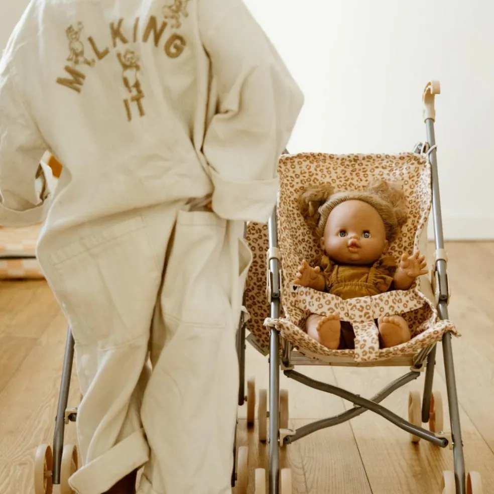 Faites briller les yeux de votre enfant avec la poussette pour poupée Gaze d’Atelier Wagram, un jouet doux et élégant à personnaliser pour des instants de jeu inoubliables !