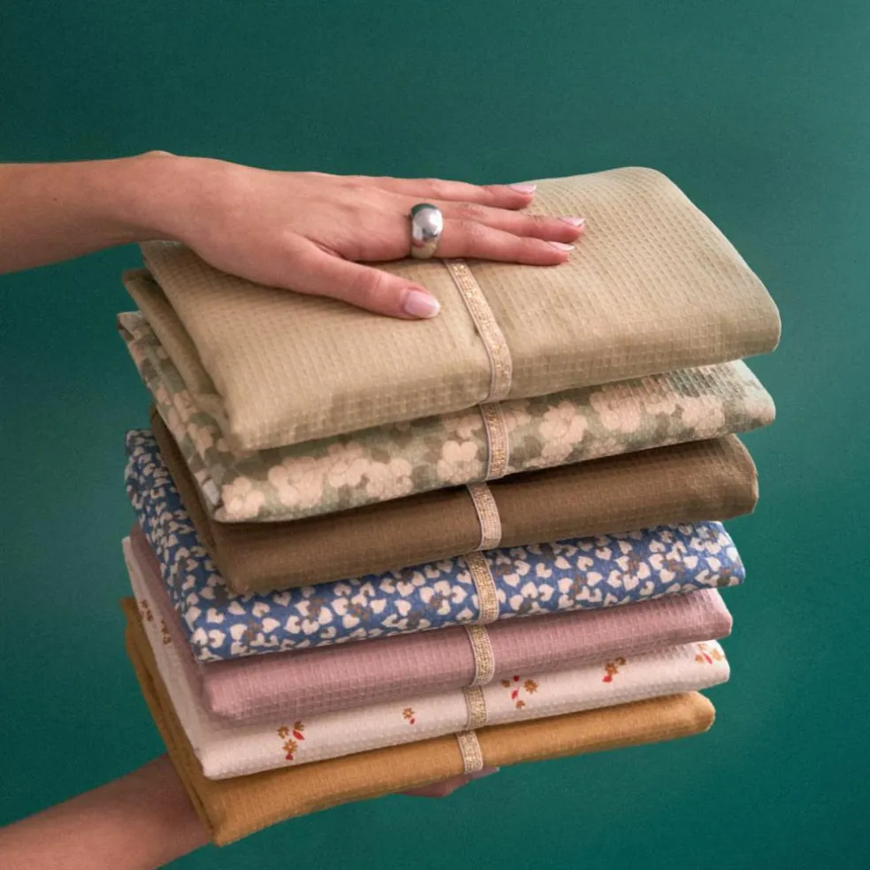 Matière : Nid d’abeille 100% coton bio, polyester min. 75% PET recyclé