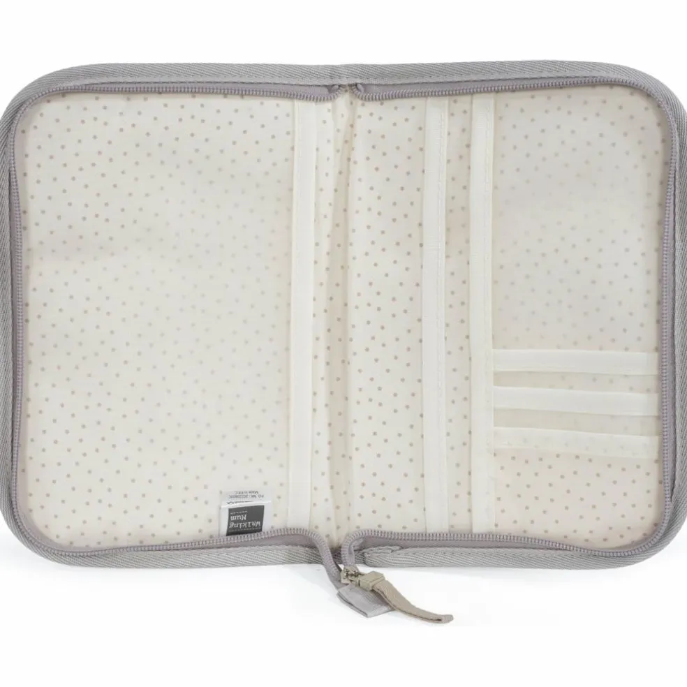 – Il est également doté d’une fermeture éclair pratique pour garder en sécurité le protège carnet de santé et tous les documents de votre bébé.
