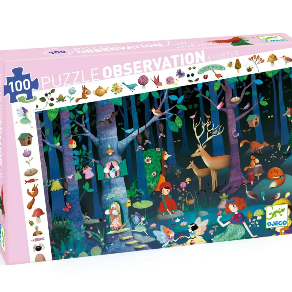 Le puzzle d’observation La forêt enchantée de la marque Djeco amusera votre enfant et développera son imagination et sa motricité. Après avoir reconstitué le puzzle, les petits pourront s’amuser à retrouver dans l’image centrale les éléments illustrés sur la frise.