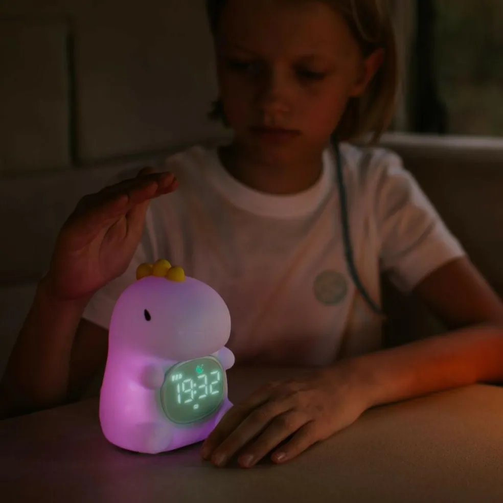 Commencez chaque journée avec le sourire grâce au Réveil 2 en 1 Dino de Mary’s, le compagnon lumineux et joyeux des petits comme des grands.