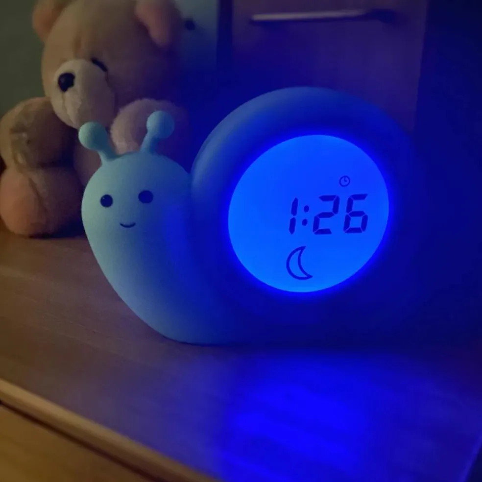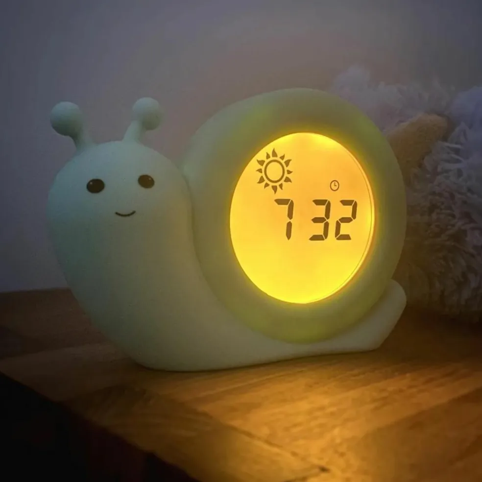 Simon l’escargot accompagne les tout-petits dans leur routine quotidienne. À la fois réveil pédagogique et veilleuse, il aide les enfants à comprendre quand il est l’heure de se lever ou de dormir grâce à ses codes couleur simples et ludiques. Rechargeable et sans fil, il trouve sa place partout dans la chambre de votre enfant pour des nuits paisibles et des matins sereins !