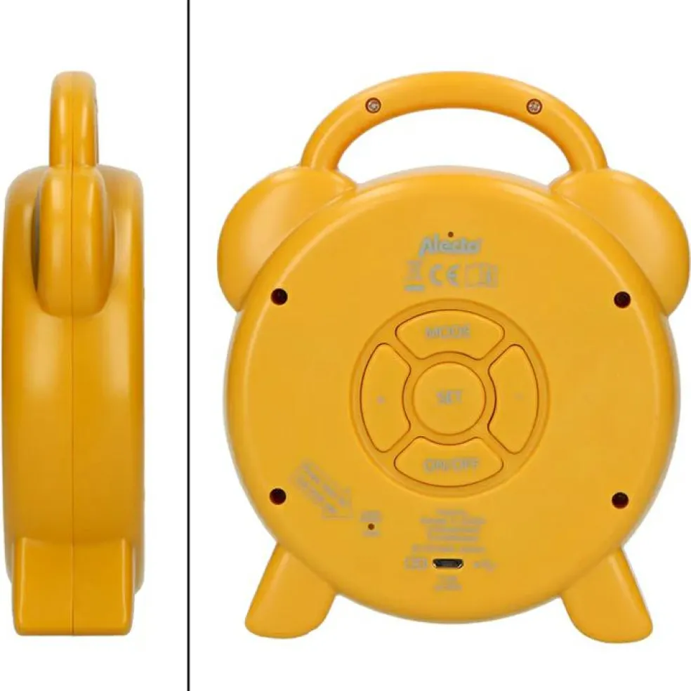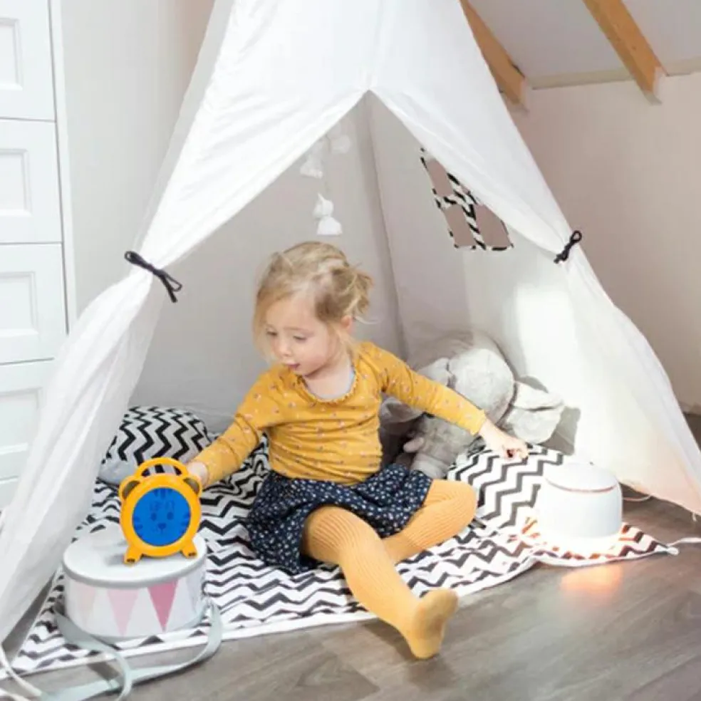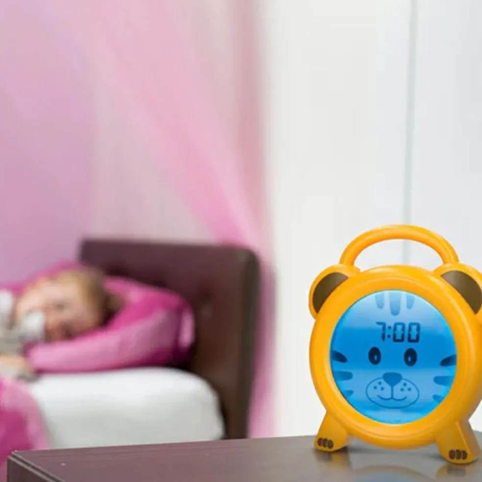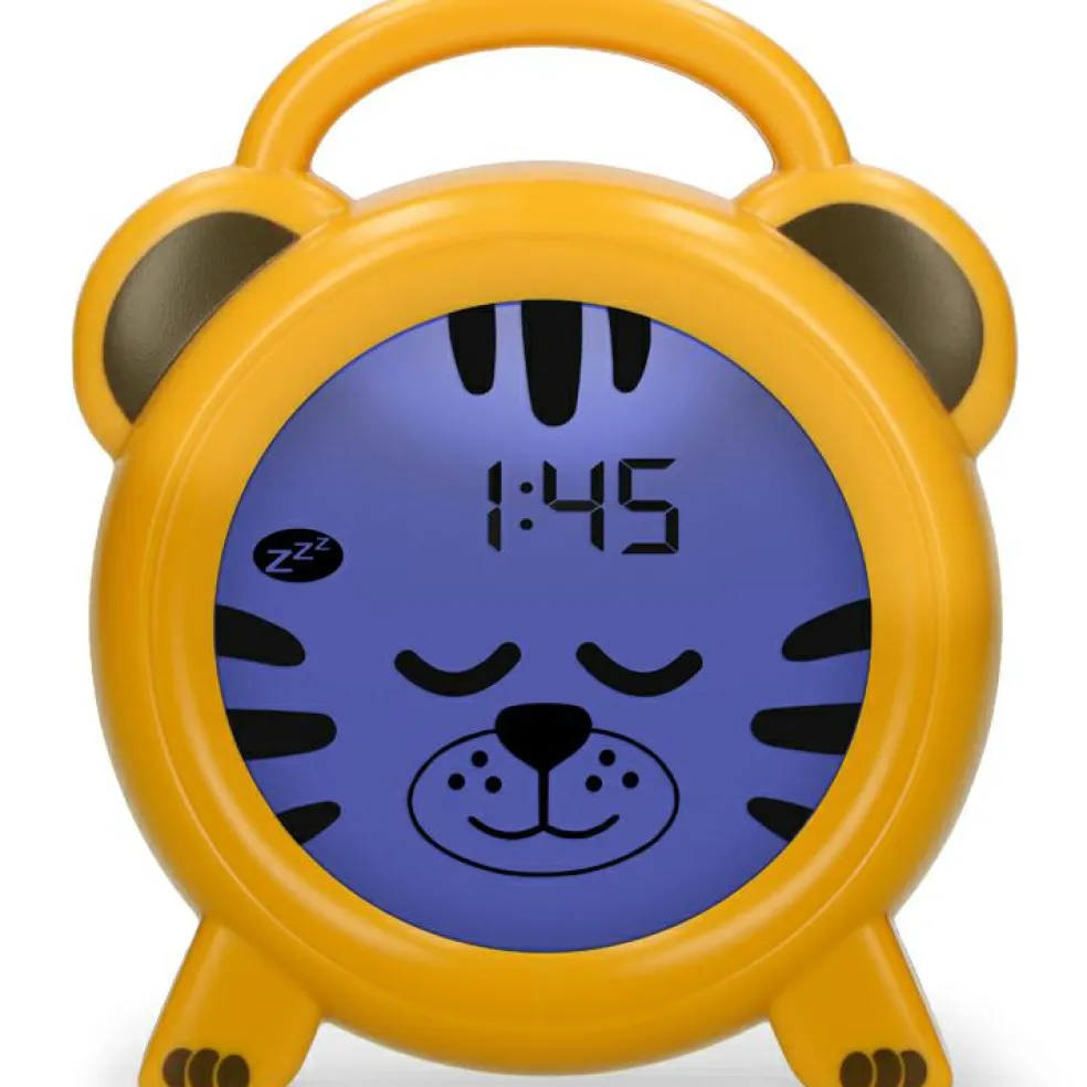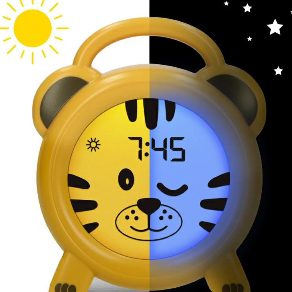 En tant que parent, vous définissez l’heure de réveil et de coucher de votre enfant. La nuit l’écran est bleu et le tigre ferme les yeux, ce qui indique à votre enfant qu’il est l’heure de dormir. Au moment du réveil l’écran devient orange et le tigre ouvre les yeux ; il est temps de se lever ! De cette façon, vous apprenez aux enfants à rester au lit plus longtemps et à améliorer leur rythme de sommeil et celui des parents !